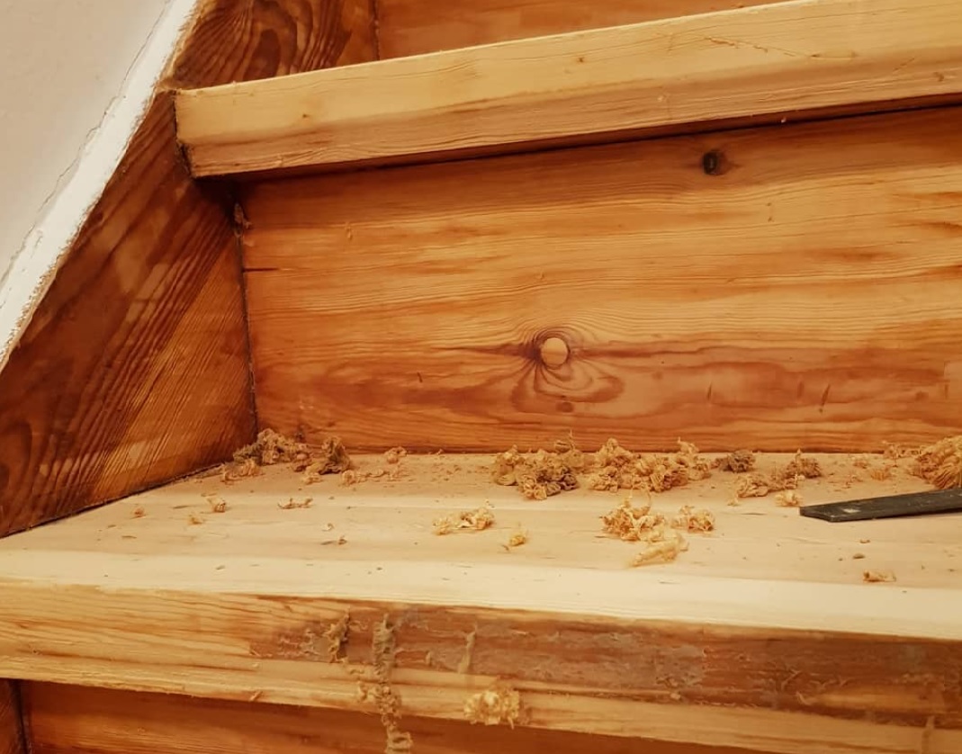 Trappor blir snabbt väldigt slitna, och då är det dags att slipa ytorna och behandla med ett nytt ytskydd.